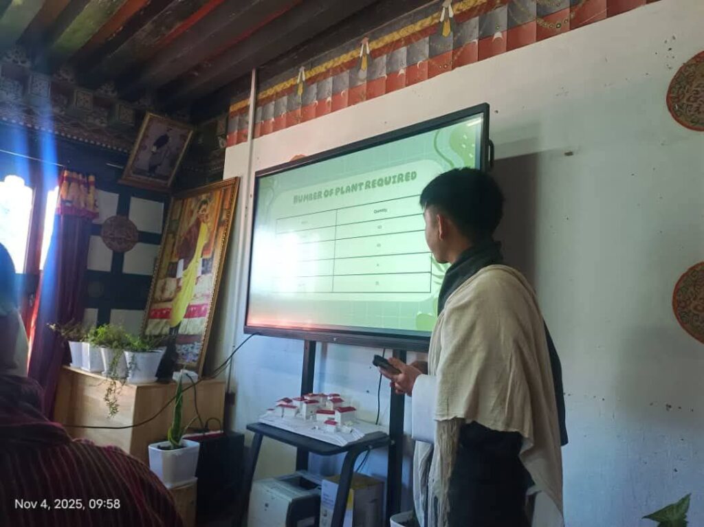 The landscape trainees visited Zhemgang Dzongkhag to present their 3D landscape design models and plant selection plans for the upcoming Bird Festival at Tingtibi to Dasho Dzongda and the team of Dzongkhag Engineers.